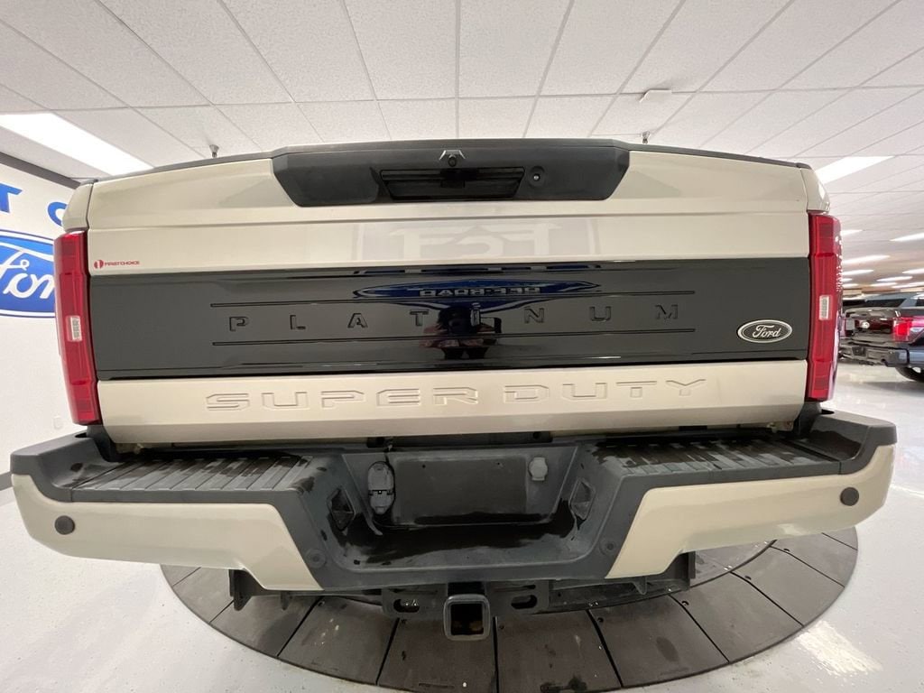 Platinum Ultimate Package: Ultimate Trailer Tow Camera System; Lane-Keeping Alert; Twin Panel Power Moonroof; Adaptive Cruise Control and Collision Warning. Order Code 703A: TorqShift-G 6-Speed Automatic Transmission with SelectShift; 6.2L 2-Valve SOHC EFI NA V8 Flex-Fuel Engine; 20" Polished Aluminum Wheels; LT275/65Rx20E OWL A/T Tires; 10. 000 Lb Payload Package GVWR; Unique Platinum Leather 40/console/40 Seats; 3.73 Axle Ratio; Premium Sony Audio with single-CD/MP3 Player. Twin Panel Power Moonroof. High Capacity Trailer Tow Package. Adaptive Cruise Control and Collision Warning. Ultimate Trailer Tow Camera System. Tough Bed Spray-In Bedliner. 5th Wheel/gooseneck Hitch Prep Package. Gooseneck Hitch Kit. Rear CHMSL Camera. Upfitter Switches (6). All-Weather Floor Mats. Transfer Case and Fuel Tank Skid Plates. **Equipment listed is based on original vehicle build and subject to change. Please confirm the accuracy of the included equipment by calling the dealer prior to purchase.**